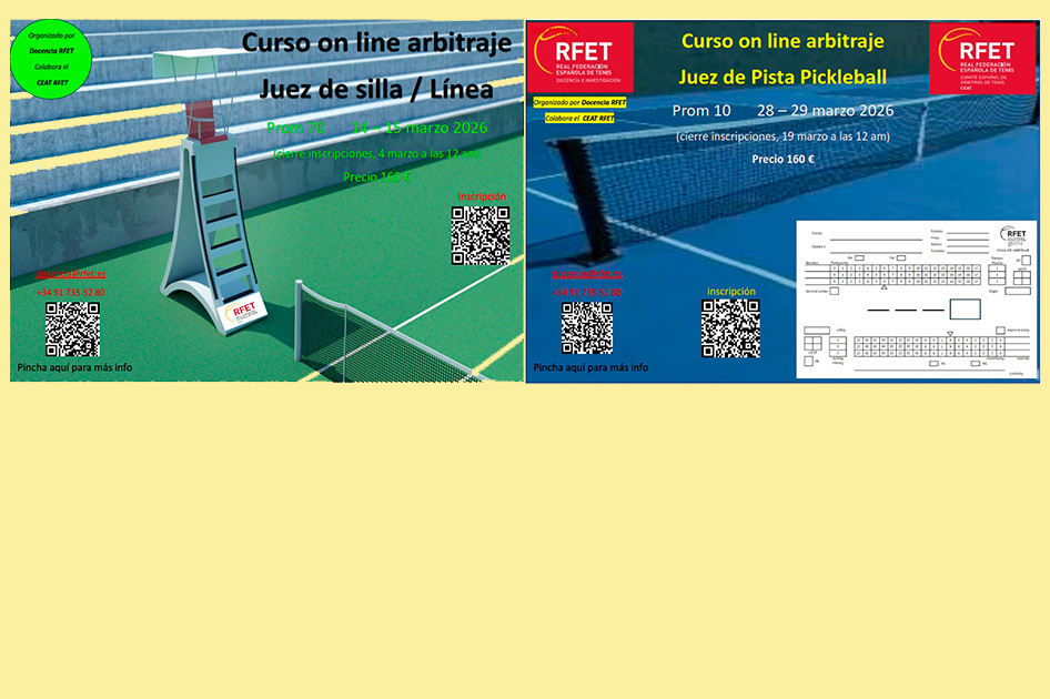 El Comité Español de Árbitros de Tenis (CEAT) ha publicado nuevos cursos de arbitraje online de la RFET, en las modalidades de Tenis y Pickleball.